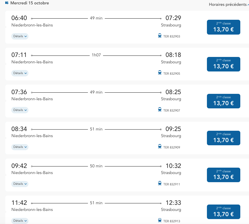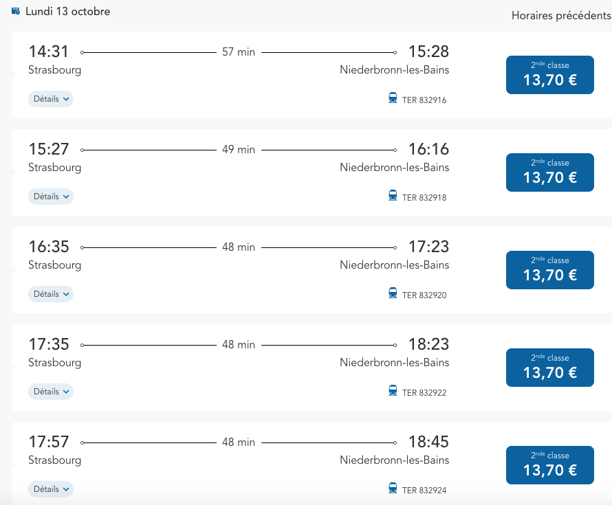 There are direct trains from Strasbourg train station to Niederbronn-les-Bains, which is the closest station to Oberbronn.